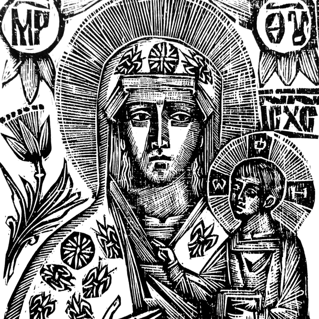 Odbitki drzeworytnicze z przedstawieniem Matki Bożej Częstochowskiej. Wysyłamy odbitkę losową, klient nie ma wpływu na jej wybór. Matryca odbita jest na papierze w formacie maksymalnie A4.