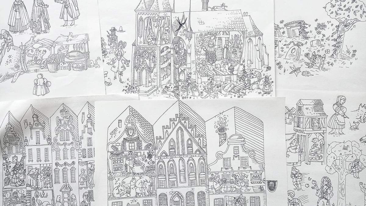 Rysunki wykonujemy za pomocą cienkopisów całkowicie odręcznie: skanujemy je i potem kolorujemy całość w programie graficznym. Jest to mozolny i powolny proces, ale jego efekty są dla nas bardzo zadowalające. Ogromną inspiracją są dla nas stare, wiekowe drzeworyty, z których czerpiemy garściami tworząc nasz własny, nieco groteskowy świat.